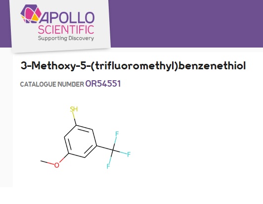 [Apollo Scientific 대리점 에이아이바이오허브]3-Methoxy-5-(trifluoromethyl)benzenethiol(OR54551)