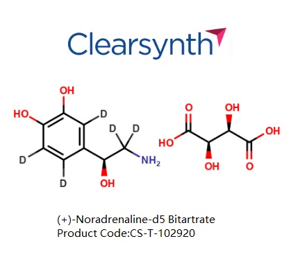 DESCRIPTION:(+)-Noradrenaline-d5 Bitartrate is a drug product that is used as an analytical standard for HPLC, as well as in research and development of drugs.