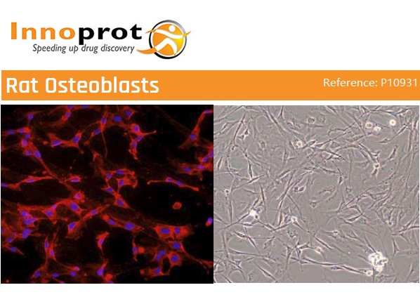 Rat Osteoblasts (RO) provided by Innoprot are isolated from rat calvariae. RO are cryopreserved at passage one and delivered frozen. Each vial of Rat Osteoblasts contains more than 500.000 viable cells.