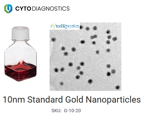 Cytodiagnostics unconjugated gold nanoparticles are made using a unique proprietary protocol resulting in particles with superior size distribution and shape compared to that of the leading competitor.
