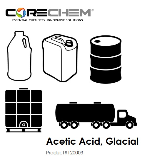 CORECHEM is a supplier/distributor of bulk Glacial Acetic Acid (CH3COOH / CAS: 64-19-7).