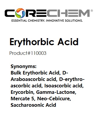 Bulk Erythorbic Acid, D-Araboascorbic acid, D-erythro-ascorbic acid, Isoascorbic acid, Erycorbin, Gamma-Lactone, Mercate 5, Neo-Cebicure, Saccharosonic Acid