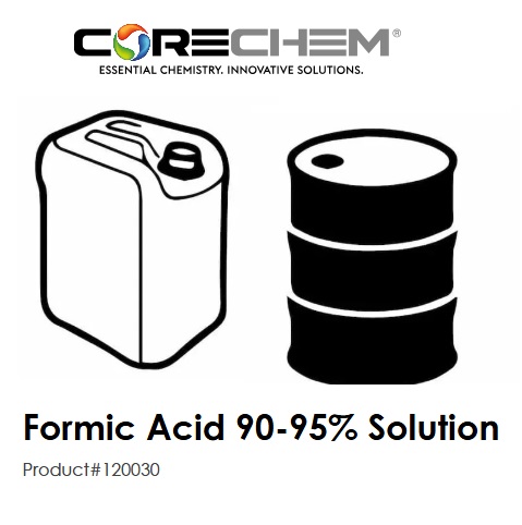CORECHEM is a supplier/distributor of Formic Acid in bulk. Formic Acid 90-95% Solution is available to buy in 5-gallon (50 lb) carboys and (approx) 15 and 55-gallon drums.