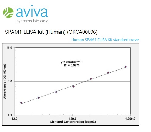 ELISA Kit Principle:Aviva Systems Biology SPAM1 ELISA Kit (Human) (OKCA00696) is based on standard sandwich enzyme-linked