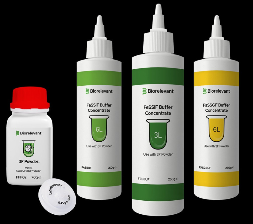 Use 3F Powder + Buffer Concentrates to make FaSSIF, FeSSIF or FaSSGF