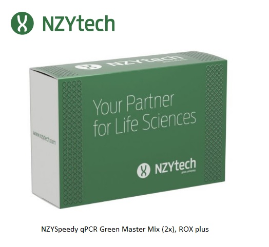 NZYSpeedy qPCR Green Master Mix (2x), ROX plus is an optimized and highly efficient reaction mixture developed for real-time PCR. This master mix enables fast and highly reproducible procedures on the most common real-time PCR apparatus. The latest developments in PCR enhancers have been incorporated in this master mix, including buffer chemistry and a polymerase with hot start like activity. These combinations guarantee that NZYSpeedy qPCR Green Master Mix (2x), ROX plus delivers ultra-sensitivity coupled with highly reproducible and fast real-time PCR protocols. The master mix is provided as a 2x reaction mixture that contains all components necessary for real-time PCR, including a green intercalating dye, dNTPs, stabilisers, and enhancers. NZYSpeedy qPCR Green Master Mix (2x), ROX plus is ready-to-use and only requires primers and template addition. It is optimized for intercalating green dye detection on different instruments.