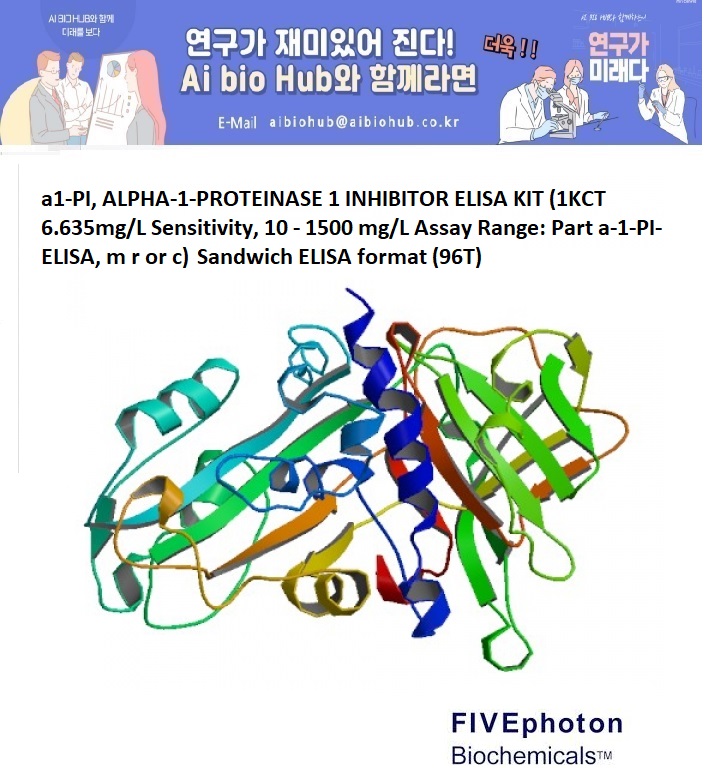 [Five Photon공식 대리점]a1-PI, ALPHA-1-PROTEINASE 1 INHIBITOR ELISA KIT (1KCT 6.635mg/L Sensitivity, 10 - 1500 mg/L Assay Range: Part a-1-PI-ELISA, m r or c)