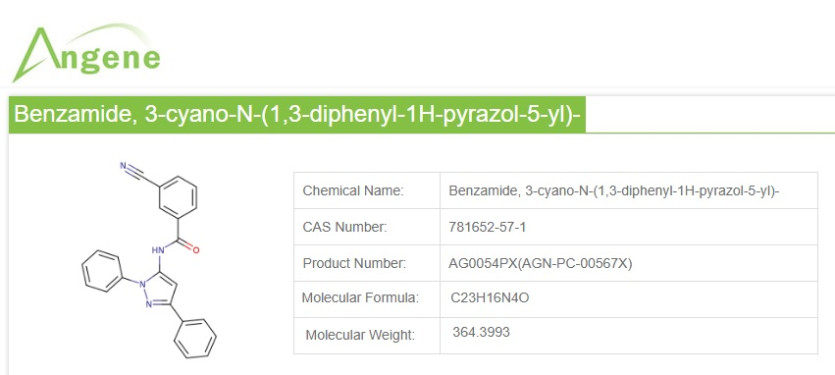 Chemical Name:Benzamide, 3-cyano-N-(1,3-diphenyl-1H-pyrazol-5-yl)-