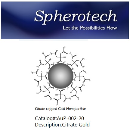 The Gold Nanoparticles offered by Spherotech are designed for achieving high efficiency and maximum sensitivity in chemical, bioanalytical, biomedical, optical and nanotechnological applications. Spherotech has developed a new technique for the synthesis of gold nanoparticles which allows for the control the size, shape and monodispersity. Our ability to control these attributes is critical for many applications in life sciences diagnostics, imaging, and therapeutics.