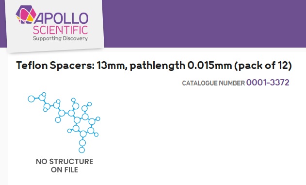 [ Apollo Scientific 대리점 에이아이바이오허브 ]Teflon Spacers: 13mm, pathlength 0.015mm (pack of 12)(0001-3372)