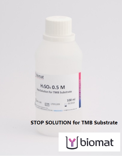 The Stop solution is a sulphuric acid solution for colorimetric ELISA using TMB (3,3′,5,5′ – tetramethylbenzidine) substrate.