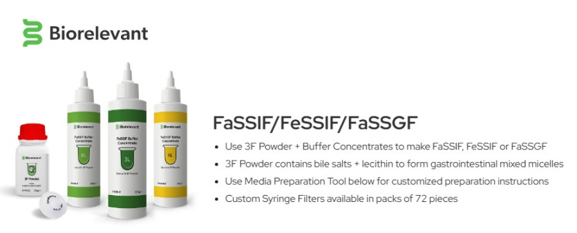 ⦁ Use 3F Powder + Buffer Concentrates to make FaSSIF, FeSSIF or FaSSGF