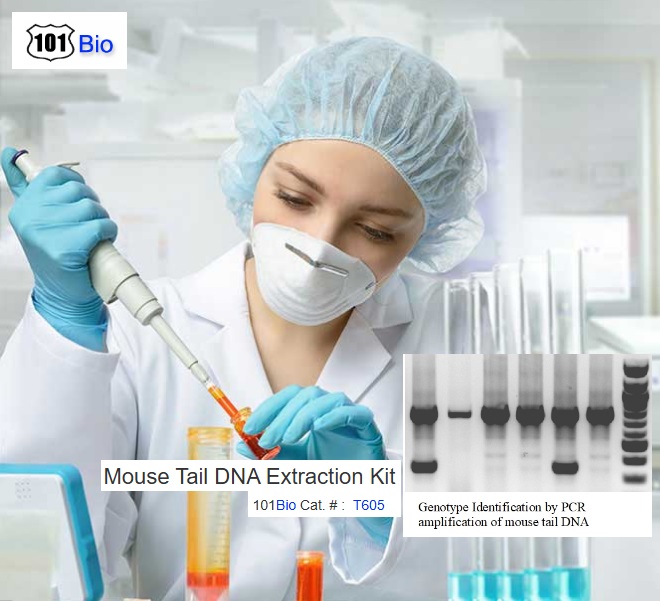 Mouse tail DNA extraction kit provides a simple and rapid method to isolate the total DNA from mouse tail for genotyping. The formulated buffer system is a ready-to-use single reagent without other preparation. No organic extraction and alcohol precipitation are needed, and multiple samples can be easily processed simultaneously.