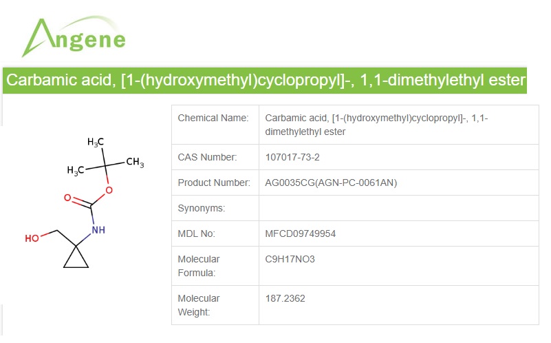 [ Angene Chemical 대리점 에이아이바이오허브]Carbamic acid, [1-(hydroxymethyl)cyclopropyl]-, 1,1-dimethylethyl ester(AG0035CG)