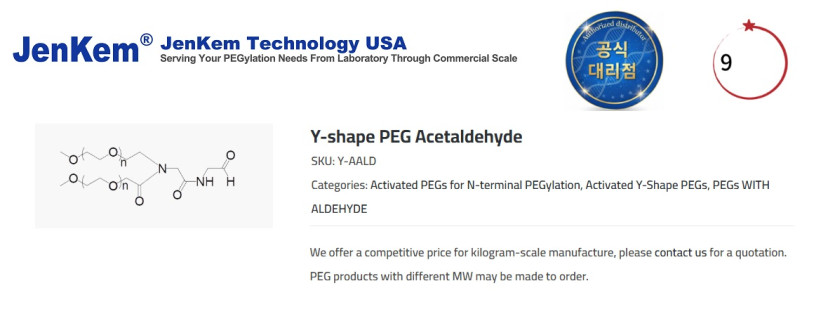 [ JenKem 한국공식대리점 에이아이바이오허브 ]Y-shape PEG Acetaldehyde(Y-AALD)