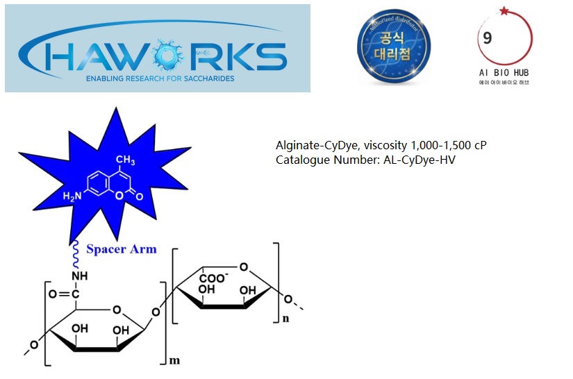 [Haworks 한국 공식 대리점 AI Bio Hub [에이아이바이오허브]]Alginate-CyDye, viscosity 1,000-1,500 cP( AL-CyDye-HV)