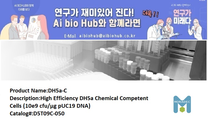 Description:High Efficiency DH5a Chemical Competent Cells (10e9 cfu/μg pUC19 DNA)