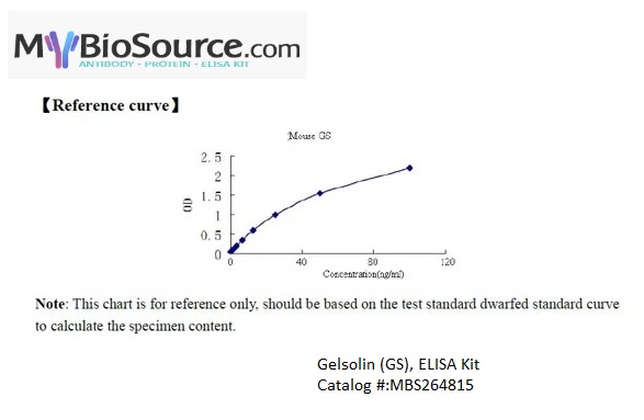 MBS264815 is a ready-to-use microwell, strip plate ELISA (enzyme-linked immunosorbent assay) Kit for analyzing the presence of the Gelsolin (GS) ELISA Kit target analytes in biological samples. The concentration gradients of the kit standards or positive controls render a theoretical kit detection range in biological research samples containing GS. The ELISA analytical biochemical technique of the MBS264815 kit is based on GS antibody-GS antigen interactions (immunosorbency) and an HRP colorimetric detection system to detect GS antigen targets in samples. The ELISA Kit is designed to detect native, not recombinant, GS. Appropriate sample types may include undiluted body fluids and/or tissue homogenates, secretions. Quality control assays assessing reproducibility identified the intra-assay CV (%) and inter-assay CV(%).